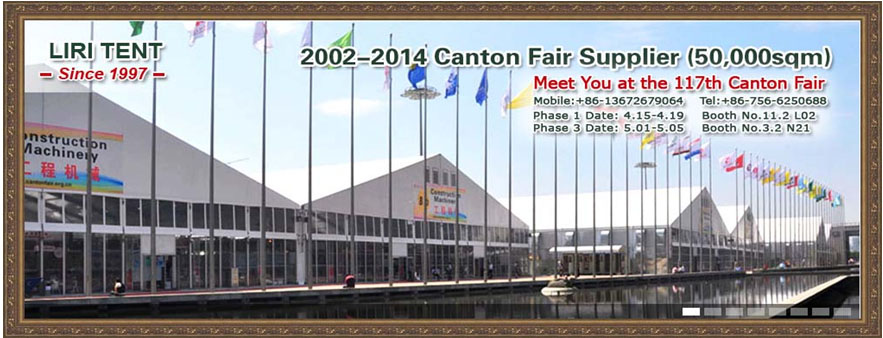 With less than a month from the 117th canton fair opening,Liri Tent is waiting for you.Liri Tent still supplies the 117th Canton Fair with exhibition tents covering 60000 sqm as always.welcome to canton fair to witness liris 50,000 sqm tents erecting here.