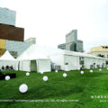 We customized two 20*85m frame marquee tents for Mercedes-Benz with 8m ceiling height and nearly 3000 square meters of space. The whole event area covers several areas such as the exhibition area, experience area, negotiation area, release area, bar, and working area. The frame marquee tent without pillars can accommodate nearly 1,000 people.