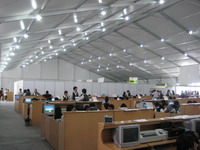 The tents on the Canton Fair was widely used as the register center of the purchasers,temporary offices,walk ways,polices rest rooms, safety-checking shelters,temporary restaurants and so on. The 40mbig tents which used as the register center of the purchasers is a big landscape on the Canton Fair!