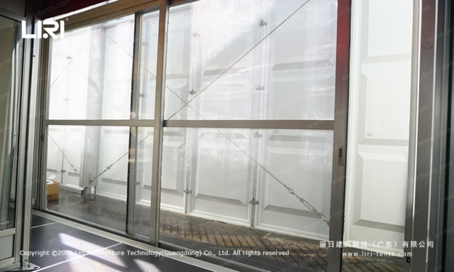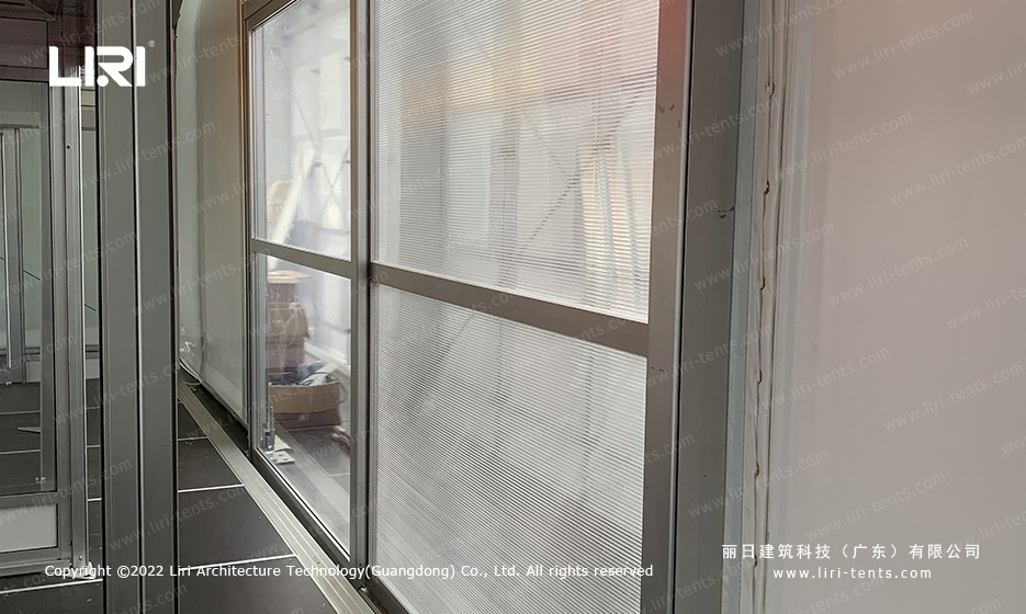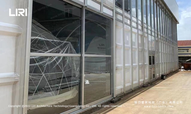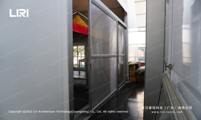 Aluminum sliding door can be customized in length from 3 meters to 6 meters single sided, generally used in a set of two sides. You can choose glass surface and transparent PVC tarpaulin, beautiful.