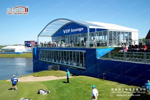The pictures show the our dome roof shape double decker tent with glass walls, ABS walls, and glass doors. It is used as the VIP lounge for the 2015 PGA event in Sweden. It’s original from Liri Tent. Widely used as VIP lounge tent, sports event tent, media room tent, hotel tent, restaurant tent, movable office tent, wedding marquee tent, event tent, party tent, festival tent, racing tent, exhibition tent, tradeshow tent, outdoor activity marquee tent, and tent hire business, event design business, etc.