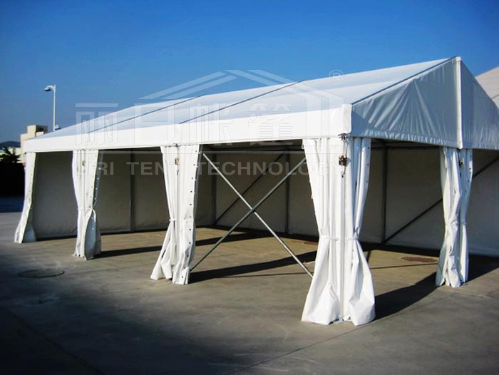 The Australia Party Tent for sale are available in the clear span width of 4m, 6m, 8m, 10m, and 12m and the standard side height is 2.4m. The Party Tent is modular by design so they may be increased or decreased by 3m. The main frameworks (upright support and roof beams) are manufactured in 2 channels 89x48x3mm hard pressed extruded aluminum. The sidewalls and roof covers are manufactured of 850g/m2 PVC-coated polyester textile flame retardant to DIN4102 B1, M2. It is easy to assemble and dismantle as well as convenient to store because of its small volume. It has a wind load of 100km/hr. The fabric is available in block-out or translucent.