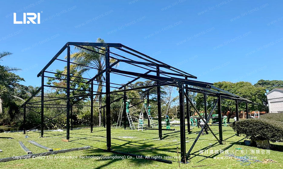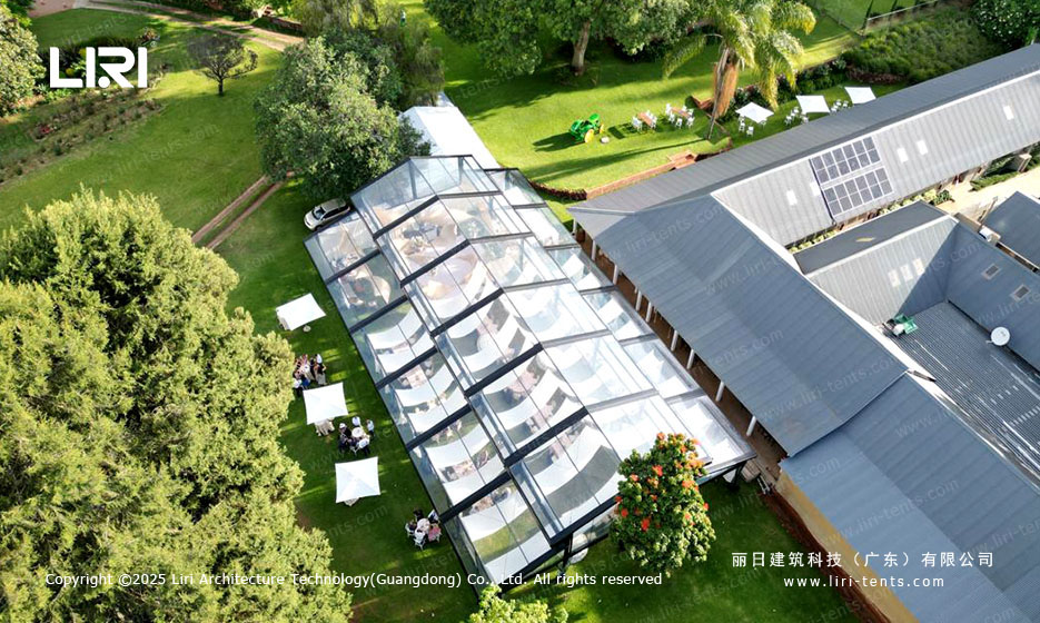 Installation of an Orangery Frame Marquee is remarkably straightforward, with no special demands on the construction site. It can be quickly set up on various surfaces, including grassland, asphalt, and concrete ground.