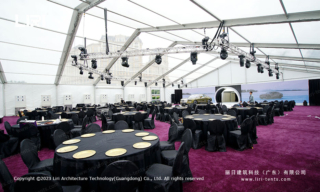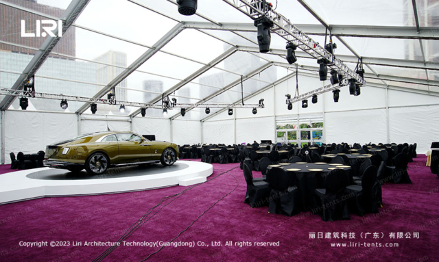Our company recently built a clear event marquee tent for a luxury car brand. The tent was used to hold a VIP customer dinner and new car experience meeting. The tent added a bright scenery to the large grassy area in the city center, demonstrating the brand’s prestige and luxury.