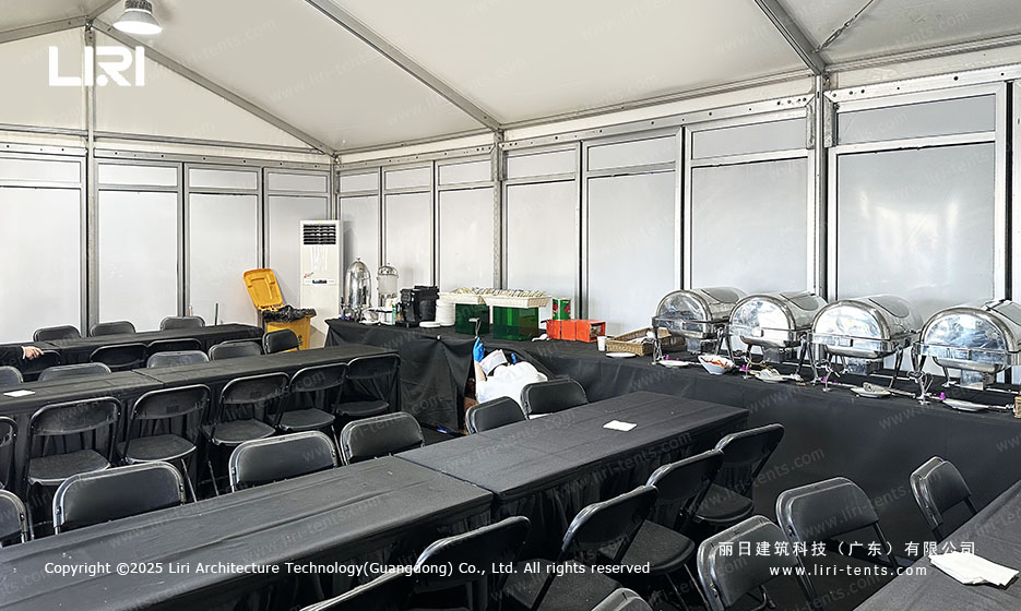 Ground Isolation: We prioritize the installation of a Cassette Flooring System. This system not only provides a flat, professional indoor surface but critically establishes an insulating layer between the tent and the frozen ground, which is essential for Insulation effectiveness.