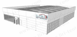 2.The roof is flat with 7° roof pitch. It is worth mentioning that there is a tippet on the eave of the tent, after improvement and innovation, we increase the space for the banner advertising, providing our customer with the platform to print Ads on the tents.