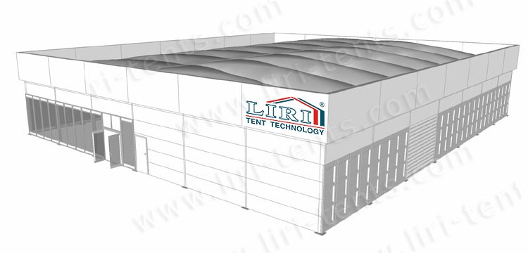 The Thermo Roof Cube Structure Tent for sale series are available in clear span width of 10m 15m 20m 25m 30m, and the main profile size is 256x121x5mm.
