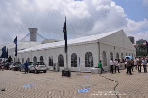 It is equipped with clear windows, decoration roof lining, inside curtain, pagoda tent entrance.The tent series are widely used as the party tent, wedding tent, exhibition tent, conference tent, festivals celebration tent, corporate events tent or other events, etc.