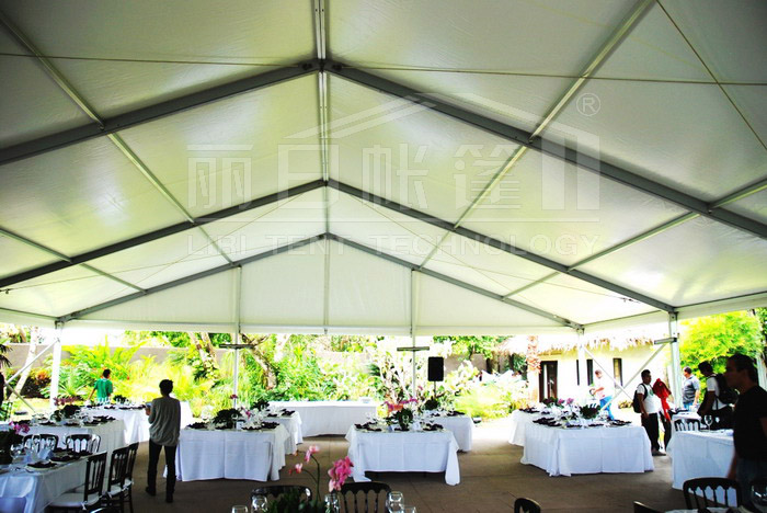 The most popular marquee is a frame marquee; this is a good option as it does not require any additional space for guy ropes, and so as long as you have the required space for the marquee it will fit into the site. The traditional marquee or the modern tension tent can look a little bit better but they usually require an additional one metre for guy ropes.