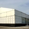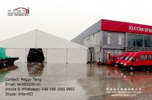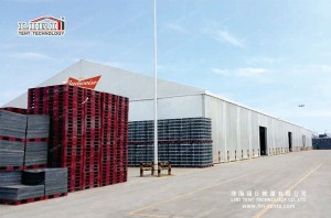 LIRI industrial stuctures is large clearspan used as temporary or semi-permanent storage warehouse and workshop. It is durable and robust with ABS solid walls and steel panel walls. Due to its large inner space, forklift and other heavey machineries can moving freely inside the tent. Width spans from 30m to 50m, length can be unlimited by adding 5m long prolongation bays to the tent.