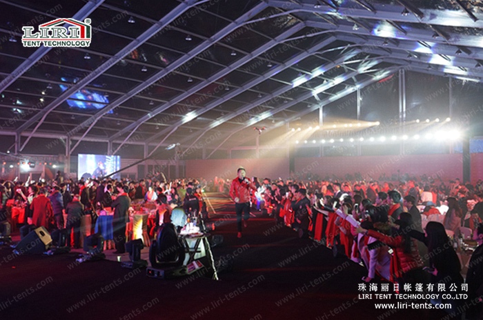 The clear span of the Transparent Tent for Outdoor Company Party from Liri Tent Factory is from 20-60m. The main profile size is 350x120x5mm and the modular structure can be increased and decreased in bay distance of 5m according to the clients’ request. The main frameworks (upright support and roof beam) are manufactured of high impact extruded anodized aluminum (6061/T6). The PVC covers use PVC-coated polyester textile and flame retardance which is based on the European standard DIN 4102B1, M2.