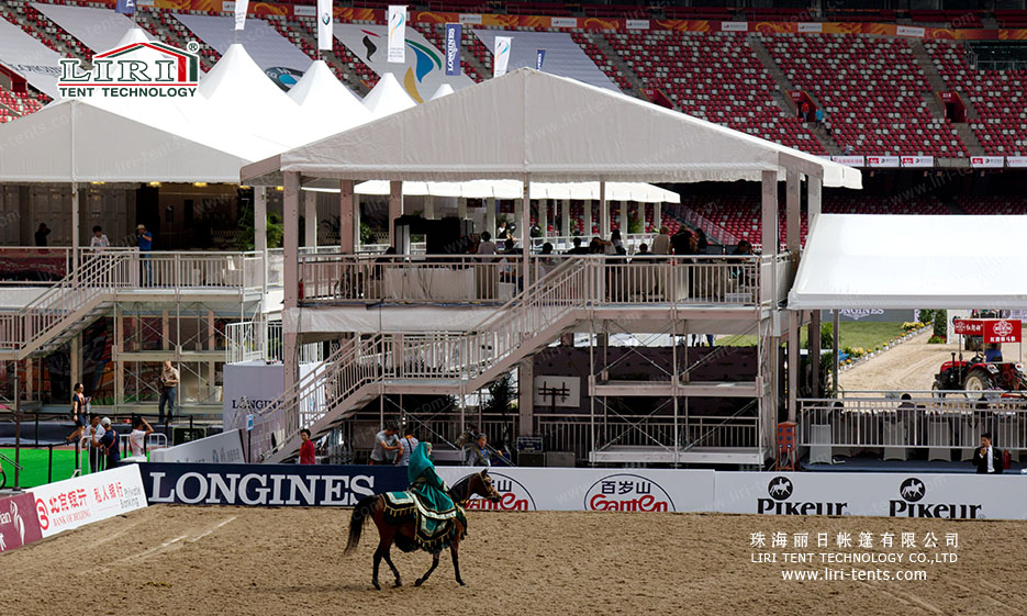 To ensure the horses are in good condition in the race,a resting place for the horses is necessary,which commonly known as a stable. Zhuhai Liri Tent CO.,Ltd.,has been a partner of Olympic Games and Asian Games. We provided the equestrian tent sale,rental,construction,and customized services. According to the event venues,the eave height of the equestrian tent can be 2.6m,3m,and 4m.