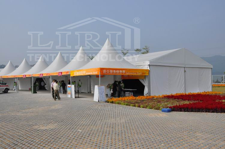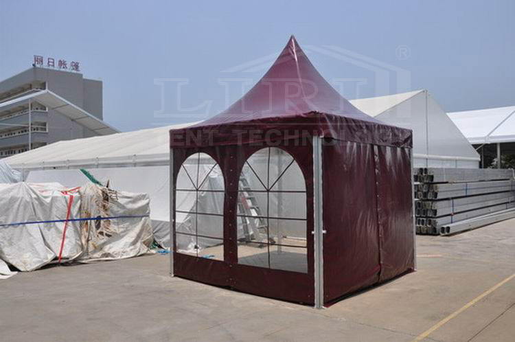 The Mini Pagoda Tent for sale uses heavy-duty hard pressed extruded aluminum of 55x55x2mm. The roof cover uses 650-850 g/sqm and is flame retardant to DIN4102B1, M2 UV-resistant. There are two choices of PVC, translucent and block-out. The Mini Pagoda Tent is widely used for product production, rescue mission, exhibition, park, and theme park facility. It is also an excellent way to shelter you from the sun and rain.