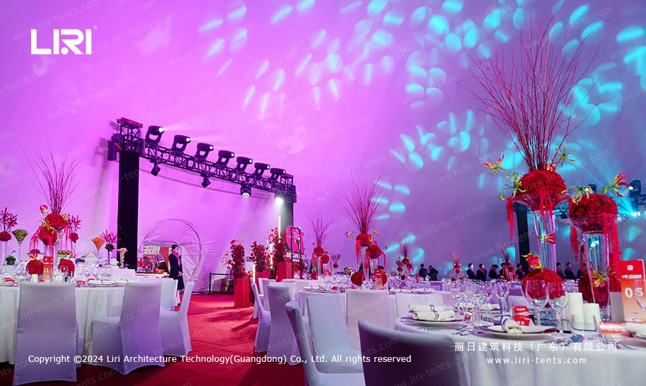 In fact, the Geodesic dome tents offers an interior space without center columns. Ground and air, the entire tent has 99% usable space. Pink weddings, luxury meetings and music parties can all be held inside the tent.