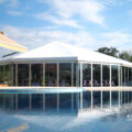 On the one hand, the main frame of the marquee tents for sale is an aluminum alloy structure. The aluminum alloy frame uses encrypted oxide film, which has a good anti-corrosion function; on the other hand, the tarp uses PVC double-sided knife-scraped coated cloth with a special corrosion-resistant agent added. This makes the building less likely to rust even in rainy weather.