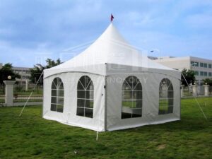 The Pinnacle Tent for sale can be used not only for a single unit but also can be combined to enlarge space for a rain gutter. The Pinnacle tent is more easier to assemble and dismantle than the European Pagoda tent, as well as easier to store. The pinnacle tent is different from the traditional European tent because of its simple interior structure. The Pinnacle tent is also more safe and strong compared to the folding tent. It will take about 10 minutes for two people to assemble the tent. They can make your outdoor event become more visually pleasing!