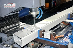 CNC machine. This is a machine equipped with an automated process control system,the computation of various control signals issued by the NC device to control the machines movements,and according to the shape and size of the drawings,process the parts automatically. It is a better way to solve the complex,sophisticated,small quantity and variety of parts processing problems. LIRI TENT is the first one in tent industry who apply the CNC machine and CNC cutting machine,which achieve the aluminum frame automated process integration and PVC fabric CNC cutting integration,ensure the precision machining accuracy and stability of the processing quality.
