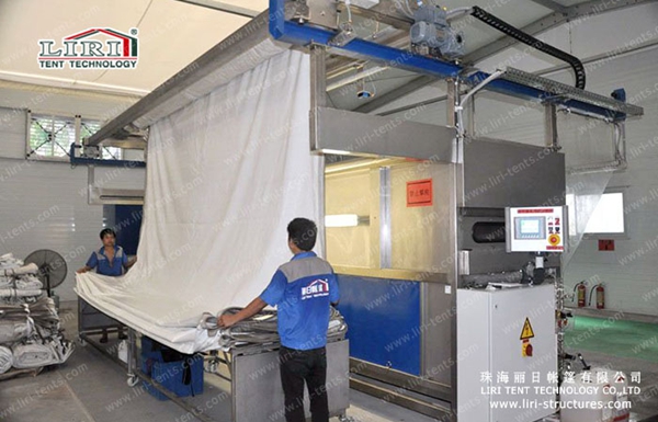 Automatic washing machine. LIRI TENT also introduced a fabric cleaning machines imported from Germany. We are the only one company in China who introduced this machine,in order to fully realize the automatic fabric cleaning,reduce labor intensity and improve production efficiency.