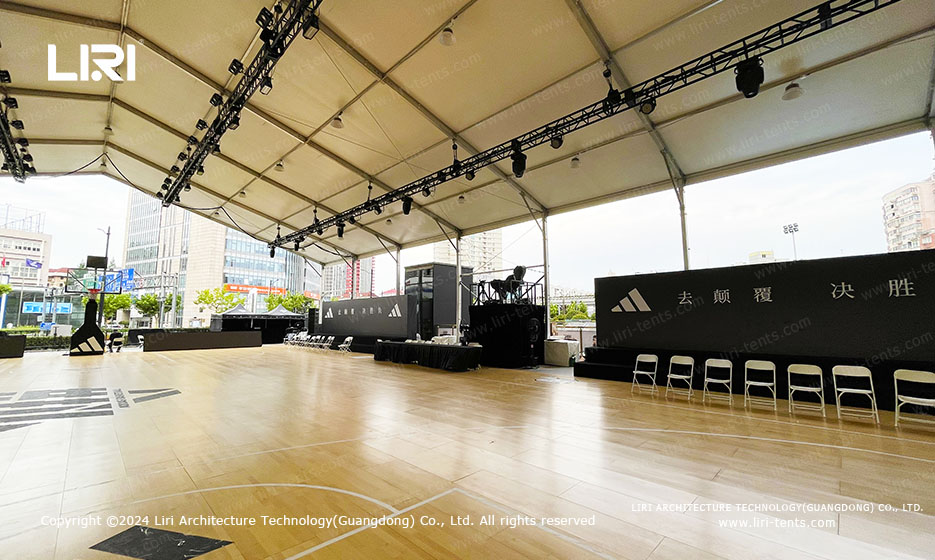 Sports event marquee provide temporary structure tents with special widths, lengths and varying roof heights. They are used for a variety of purposes, for example, the athletes’ lounge, the referee’s studio, the equipment storage room, the security hall and so on.