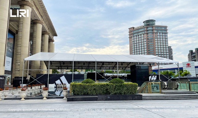 Liri event marquee completes 20x35m event marquee installation in a very short time. It provides valuable layout time for other lighting, media and security equipment.