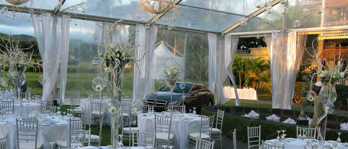 Large  PVC Marquee Tent for Outdoor Party and Event Behind every choice we make, there is a  reason why, or reasons why. Like why does our marquee tent used PVC for cover and walls rather than something else?  In genera, it is the most appropriate material. But not just simple like that. Materials and Features of Outdoor PVC marquee tent. Fabric: double pvc coated polyester fabric, 750-900g/sq.m, water proof, UV resistance, fire retardant according to standard NFPA701,CFM & DIN4102 B1/M2 Frame: hard pressed extruded aluminum 6061/T6, anodized surface finishing. Connection...