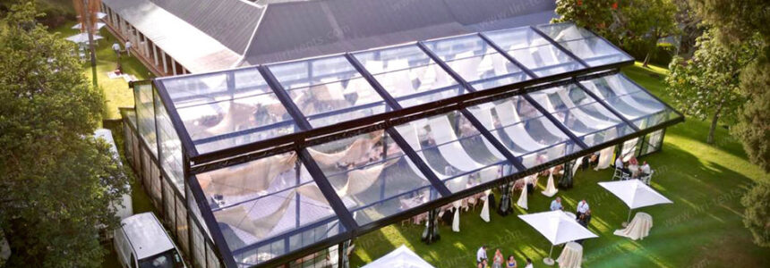 The clear span of our tents is from 3m to 80m and is available in A shapes, dome shapes, square pagoda shapes, gazebo tents, arcum shape tents, curve shape tents, double-decker structures, high peak conversions, hexagonal, octagonal, decagonal and more. We have the perfect temporary or permanent space solutions for all your outdoor events. Accessories Of 20*50M Outdoor Party Marquee: Covers: colorful cover, transparent cover, inflatable roof cover; Windows: dome or square clear PVC windows, mesh window, glass window for glass wall; Wooden Flooring System: VIP cassette flooring, s...