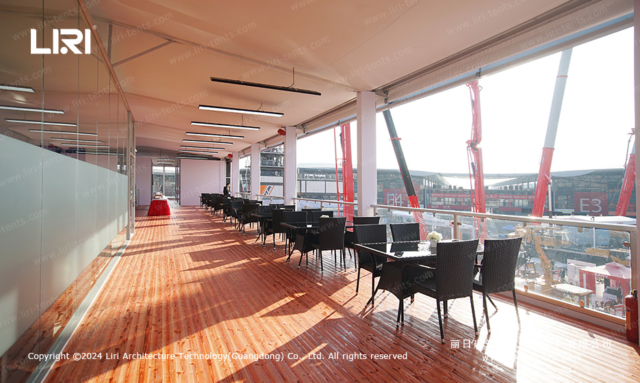 And the best thing is, you can customise it however you like, so it’ll be perfect for whatever event you’ve got in mind. Whether it’s a corporate meeting, wedding or exhibition, we’ll help you create a unique and standout venue.Another great thing about the three-storey tent is that it makes the most of all the space you’ve got. It stacks multiple layers to make the most of vertical space, so you can get the most out of your floor area.