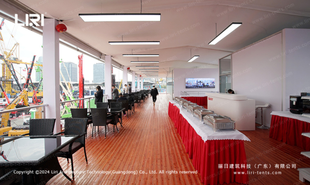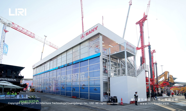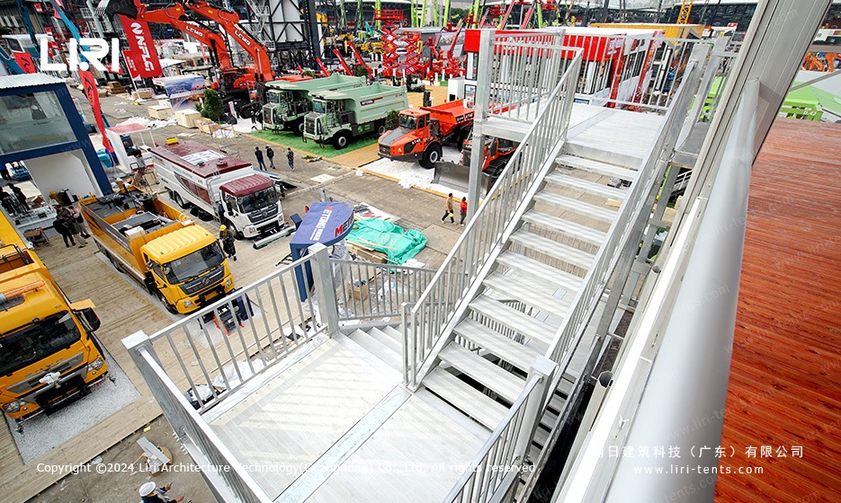 The three-storey frame tent is a new type of tent that can be used for big events and exhibitions. It has extra space and can be used in different ways.