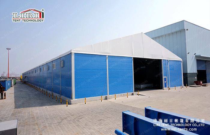 Its main structure is made up of high-tense hollow aluminium alloy and steel components, its adjustable base plate caters to various uneven ground, roof covers is made of the double-faced PVC coating , which have the best performances in breaking strength, water-proof, black-out, UV-proof, flame retardant , jointed by high frequency welding craft. Regarding wind proof capability, our tent can withstand 80-120km/h wind loading, Walls are available in sandwich wall and ABS solid walls. We also provide electromotion rolling doors and alluminum double wing/man door with related accessories in need for your safe project.
