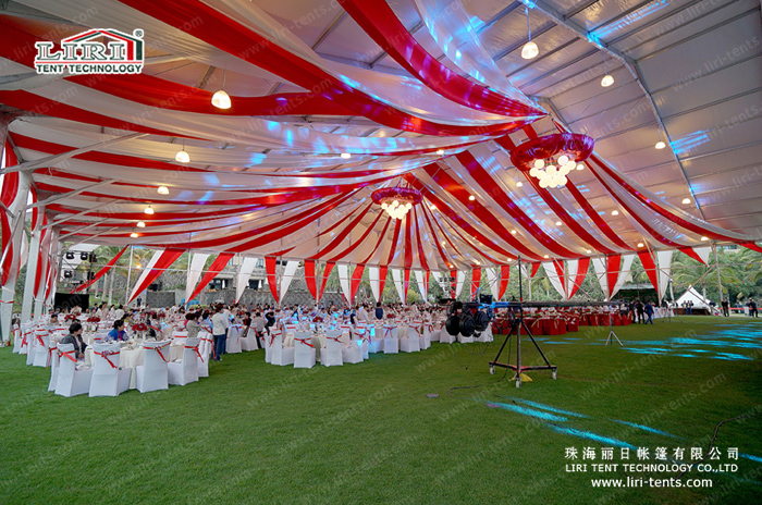 The clear span of the 15m x 20m Marquee Tent from Liri Tent Factory is from 10-60m. The main profile size is 204x120x4mm and the modular structure can be increased and decreased in bay distance of 5m according to the clients’ request. The main frameworks (upright support and roof beam) are manufactured of high impact extruded anodized aluminum (6061/T6). The PVC covers use PVC-coated polyester textile and flame retardance which is based on the European standard DIN 4102B1, M2.
